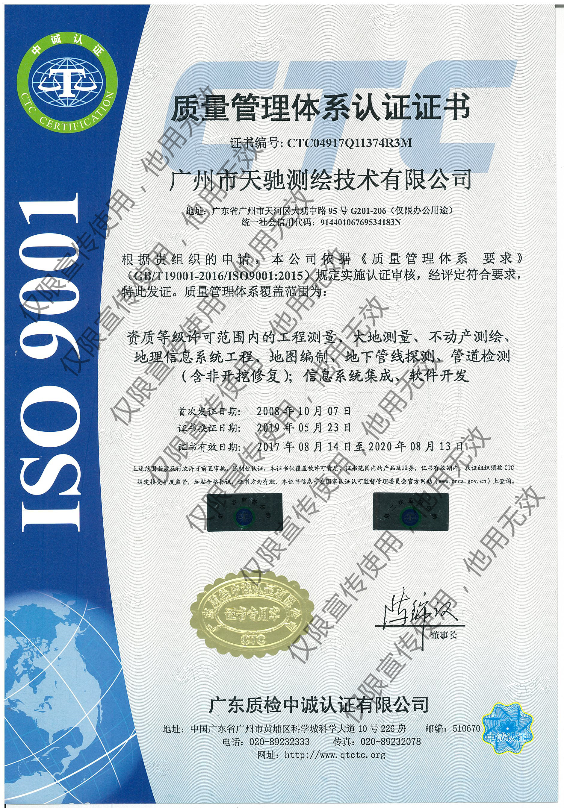 廣東天馳智慧管網有限公司(以下簡稱“天馳”),是一家為智慧城市建設而生的高新技術企業,2004年成立,業務范圍涵蓋:測繪服務、管線探測、勘測物探、咨詢設計、信息化服務、排水服務等。現已發展為華南地區地下管線行業的領軍業。
